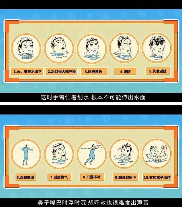 7、溺水最重要的迹象就是看起来不像溺水,他们看起来可能只是抬头在看天空、岸际、泳池边或码头。这个时候你要问:“你还好吗?”如果他们能回答,大概就没事。如果眼神涣散,可能只有不到半分钟的时间救他们一命。