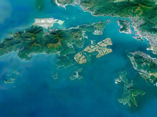 建議興建的人工島位於香港島与大嶼山之間的中部水域,填海範圍相當於半個九龍半島的面積。
