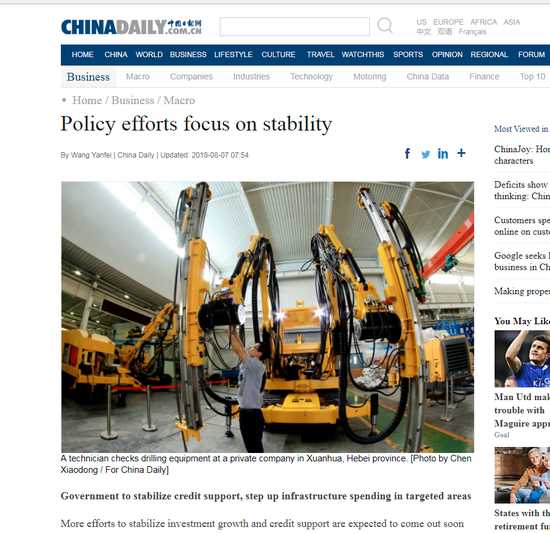 《中国日报》发表未说明消息来源的报道称,中国有望很快推出更多举措来稳定投资增长以及信贷支持,来缓解投资放缓给经济前景蒙上阴影的担忧。