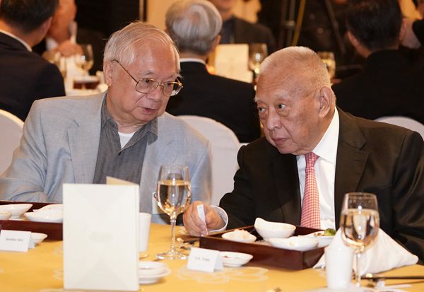 團結香港基金主席董建華(右)與合和實業董事會主席胡應湘(左)支持維港以外填海造地發展。