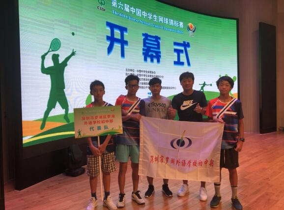 罗湖网球队经过一年的积极备战,精心挑选了李毅峰、 青立昊、彭昱铖、钟隽楷、陈子轩5名队员组成罗湖外国语学校代表队参赛。经过5天近百场的激烈拼搏,罗外代表队不畏強手,再次成功卫冕男子初中组单打、双打冠军,取得如此骄人成绩,实在可喜可贺!