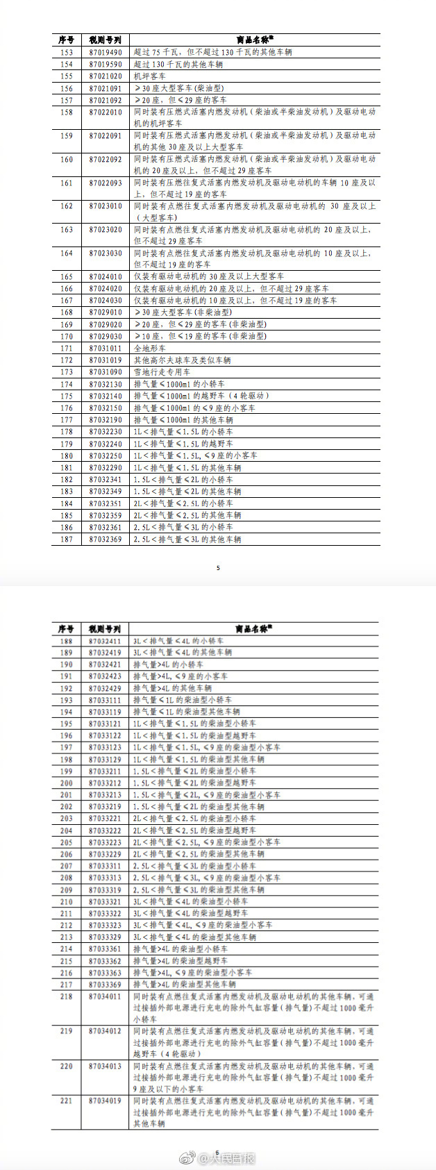 公告所附清单显示,此次对美加征25%关税的产品共有333种,涵盖汽车、能源、化工原料等。作为此次征税重点,清单所列的汽车产品超过150种,品类从公路牵引车、各型号货车到客车、小轿车等,几乎覆盖所有自美进口汽车产品。
