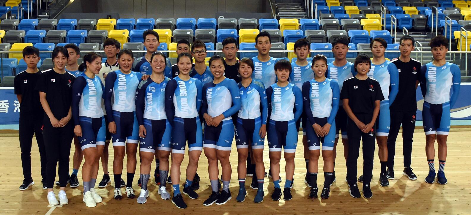 香港單車隊一眾运动员在训练后合影,前排中为「牛下女車神」李慧詩。