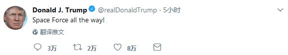 美国总统特朗普随后发推说道:“太空军,一路前行!”