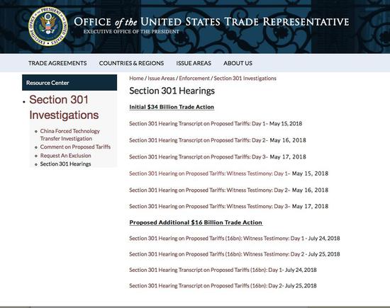 美国贸易办公室公布的听证会实录