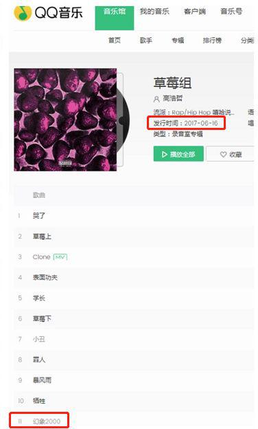 引发争议的这句歌词出自高浩哲2017年专辑《草苺组》中的《幻象2000》一曲,歌名《幻象2000》是指法国达索公司制造的战斗机“幻影2000”(Mirage 2000,台称幻象2000)。