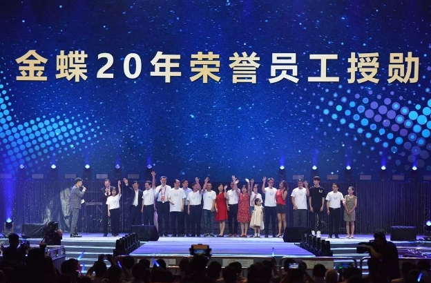 2018年8月8日,在金蝶25岁生日宴上,金蝶00001号员工金蝶集团创始人、董事会主席徐少春宣布,为所有8000多名当天在职的每位员工均发放888股金蝶国际股票(00268)!按当天的股价,这个“大红包”价值6800万元(全文均为人民币)!20年以上的老员工还获得了代表着承诺与守护的定制铂金戒指。