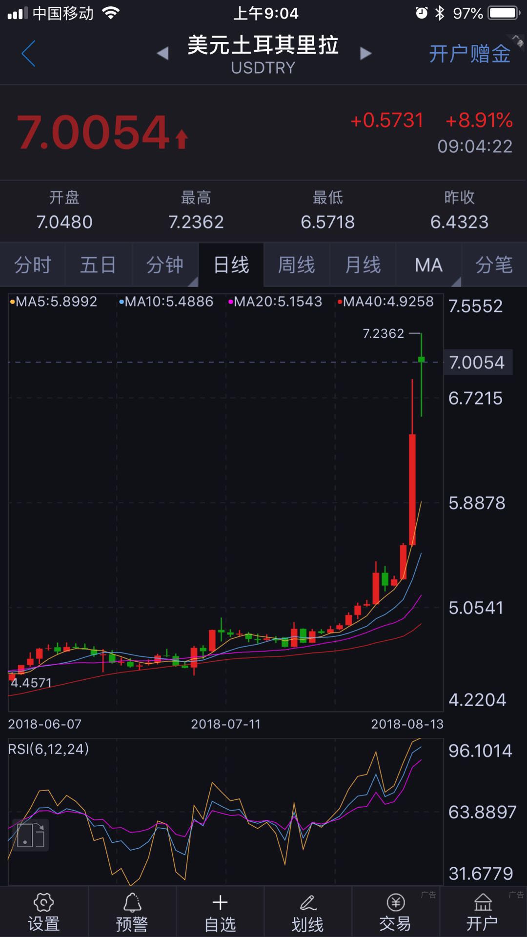 亚洲交易时段早盘里拉一度跌破7.23里拉兑换1美元的关口,随后在土耳其银行监理署(Banking Regulation and Supervision Agency)出台限制里拉互换交易后出现回弹。