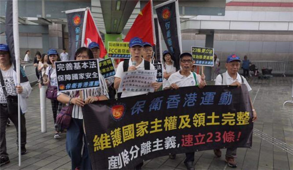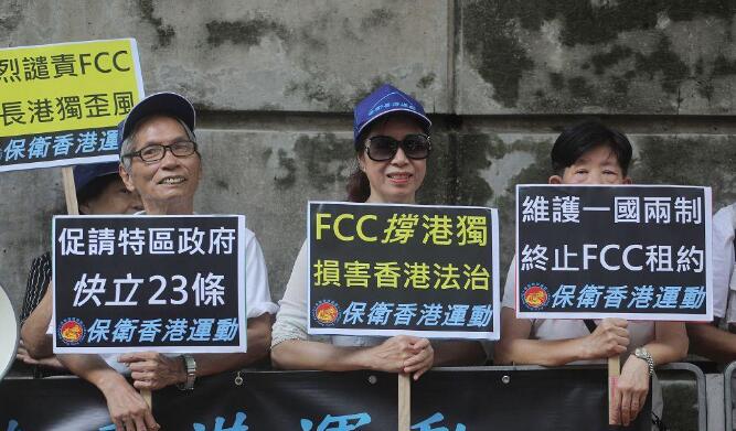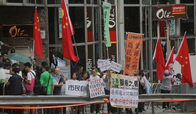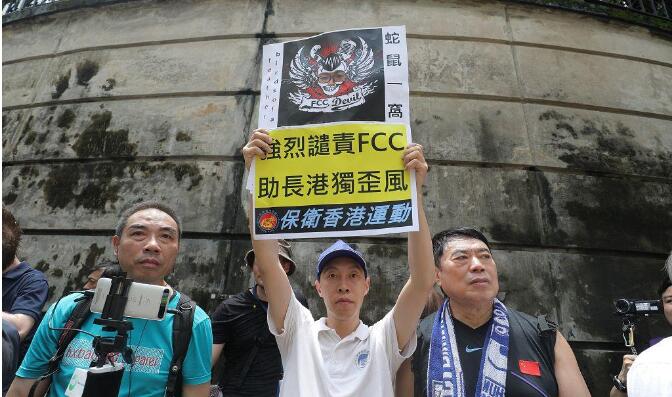 香港政研會、愛港之聲、匯賢啟動等團體,約20多名成員,由置地廣場遊行至FCC會址,沿途高叫「港獨分子滾出香港」、「叛國無言論自由」等口號及高舉國旗,譴責FCC劣行,錯誤支持港獨分子及分裂中國。