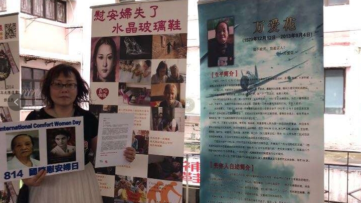 【香港商報網訊】記者方詠宜報道:今日是「第6屆國際慰安婦日」,民間團體「歷史監察·網民自發」今日於灣仔柯布連行人天橋舉辦紀念活動,團體於天橋擺放部分受害者的相片、慰安婦銅像圖及鮮花,藉此紀念這段往事,並為受害者平反。