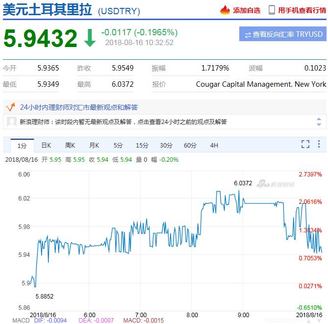 周三(8月15日),土耳其里拉全天上涨,此前安卡拉将互换交易数量由银行资本的50%调降至25%,以试图挤压空头。周三美市盘中,在安纳托里亚通讯社报道,卡塔尔已经承诺对土耳其投资150亿美元之后,里拉受到进一步刺激,兑美元短线上涨,现涨6.3%。据报道,有推特网友评论到,150亿美元足够拯救全球经济了,感谢卡塔尔!