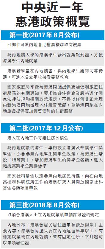 中央近一年來先後公布的三批便民措施涵蓋港人在內地讀書、就業及生活等各方面。