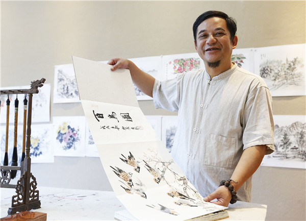 李劲涛介绍,冀通过《百鸟图》呼醒市民爱护山间飞禽;同时将“中国最美小镇”清溪的“清山溪水”画出来,供欣赏之余,呼吁市民更加注重保护自然环境。