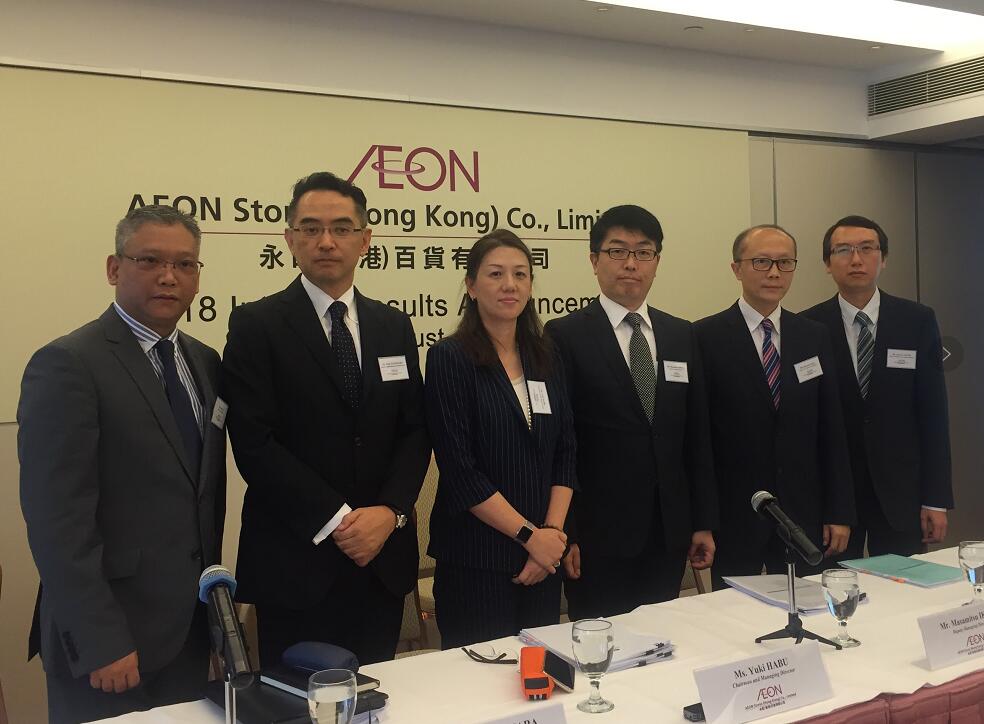 圖為永旺(香港)百貨有限公司主席及董事總經理羽生有希(左三)及永旺(香港)百貨有限公司營運董事劉志森(左一)。