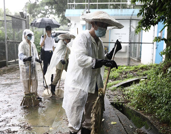 食環署派人到獅子山公園打掃及滅蚊。