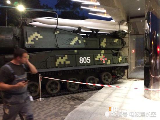 8月24日是乌克兰的独立日,为庆祝这一节日,乌克兰政府在首都基辅将举行盛大的阅兵仪式,到时会有数百辆各型装甲车辆和上万名军人参与此次阅兵。不过在昨天进行的阅兵彩排时却发生了一些不愉快,一辆正在撤离的山毛榉型自行防空导弹在拐弯时出现驾驶失误,一头撞向了街边的商业大楼。从基辅民众拍摄的现场照片来看,出事的这辆山毛榉系统还有些特别,主要是年代比较久远,生产年限可能有30多年了,和俄军和叙利亚军队目前使用的山毛榉M2不可同日而语。