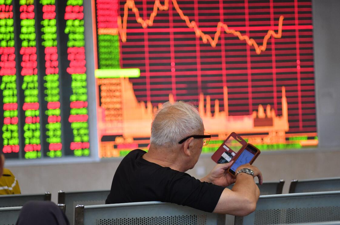 20日,成都某证券营业部内的股民关注大盘走势。中新社
