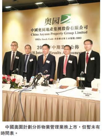 集團副總裁兼財務資金中心總監陳志斌指,旗下物業管理業務每年的營收額介乎4至5億元,盈利水平與同業接近,有分拆的計劃,但目前處於進展階段,不方便透露具體時間表。至於未來住宅性物業及商業性物業的占比仍會大致維持在7比3的比例。