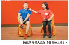 陳凱欣說,本次茶聚的最大亮點就在於「動起來」,并強調了她自創的「三三一」法則:三好即「睡得好」、「食得好」、「活得好」,三絕即「拒絕酒精」、「拒絕吸烟」、「拒絕毒品」,一多即「笑多一點」。隨后,陳凱欣邀請西九新動力社區干事黃馳上台,共同示範拉伸肩部肌肉、腿部肌肉、背部肌肉的方式。台下市民也跟着做起了「長者椅上操」,真正體現出「西九全民動起來」的主題。