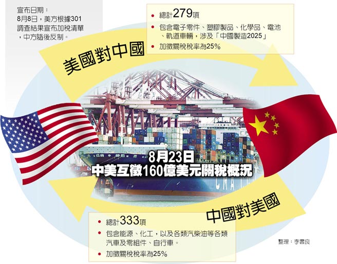 另一方面,今日起,美国第一波对160亿美元中国商品加徵25%的关税将正式生效,为反制美国,中国今起也将对同等金额的美国商品加徵报復性关税。