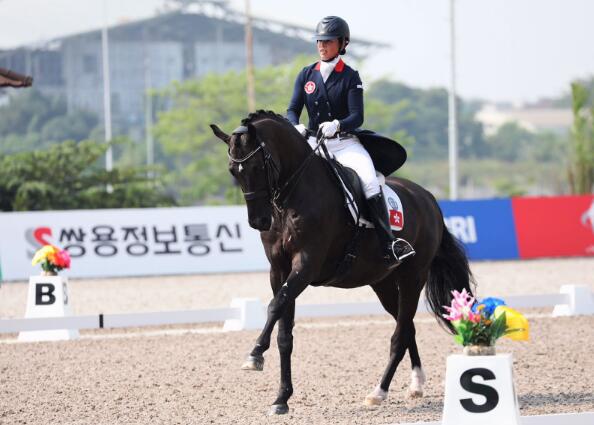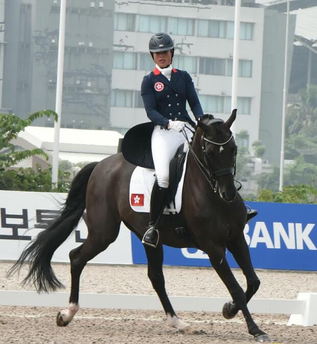 5岁开始在马会双鱼河马术中心学习马术的港骑手萧颖莹,于亚运会装舞步决赛表现出色,夺得金牌!萧颖莹赛后抚摸爱马,似乎和搭档说我们做到了!