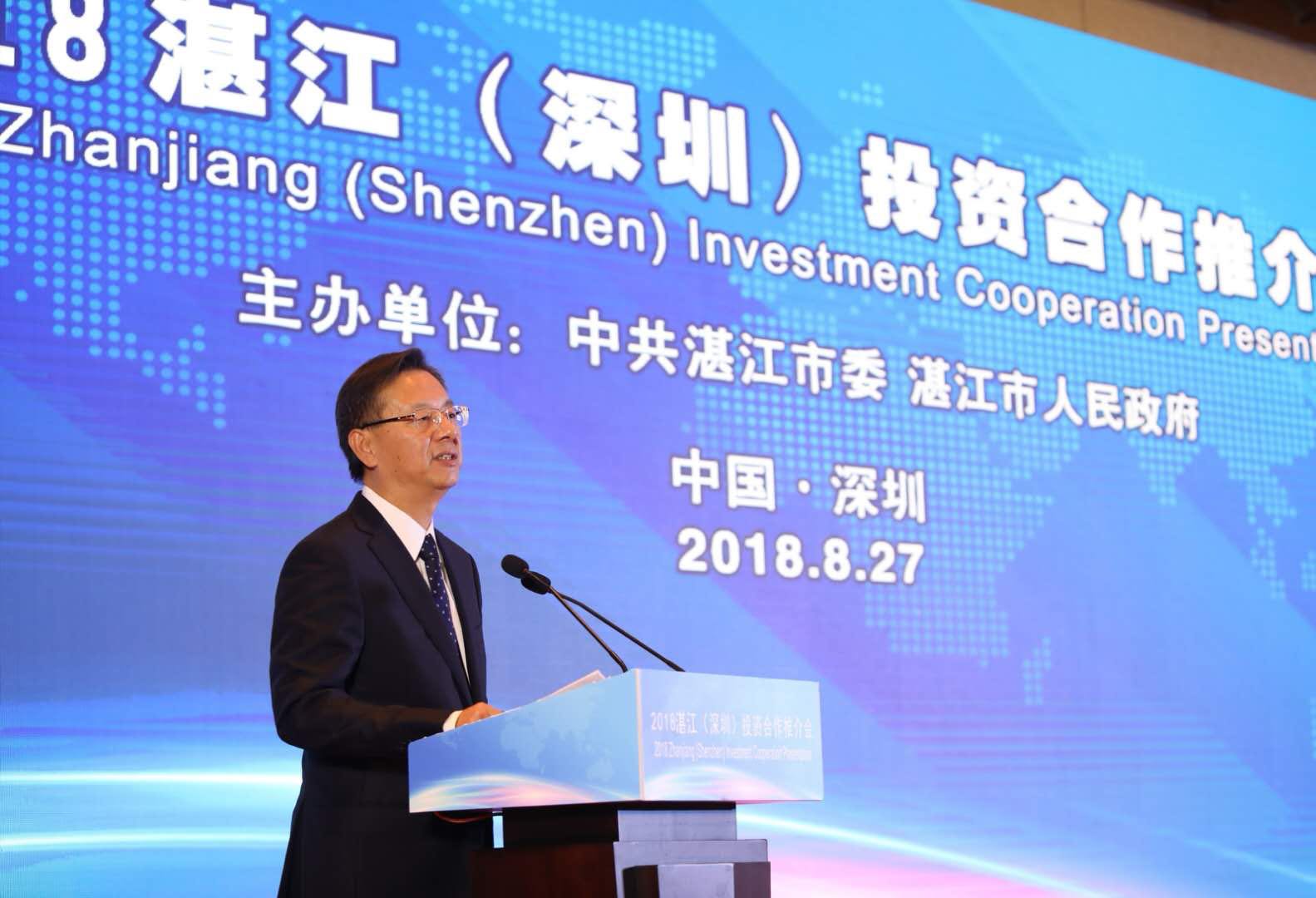 深圳市政府党组成员陈彪亦出席了此次招商活动,他在致辞中表示来自湛江的建设者在深圳改革开放发展中留下了浓墨重彩的一笔和深深的印记,深圳与湛江之间具有深厚的合作渊源和广阔的合作空间,本次推介会将推动两地在轻工、电子、石化、农产品、旅游等相关领域的深化合作。