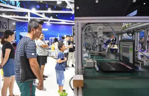 ▲8月23日,观众在首届中国国际智能产业博览会上参观笔记本电脑智能测试线。