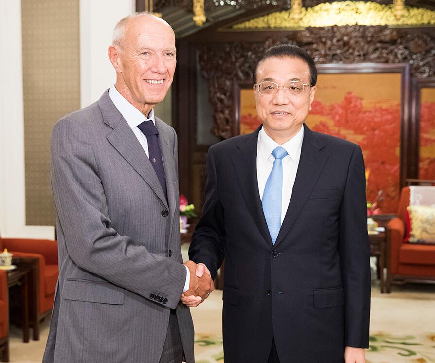 8月28日,国务院总理李克强在北京中南海紫光阁会见来华出席“一带一路”知识产权高级别会议的世界知识产权组织总干事高锐和与会代表。新华社