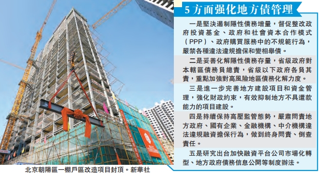 劉昆表示,今年以來,中國積極防範化解地方政府債務風險,進一步完善監管政策,從規範金融企業對地方政府和國有企業投融資行為、加強對企業發行債券的監管等方面入手,堅決遏制隱性債務增量。
