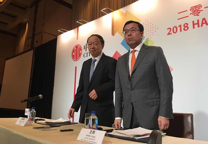 【香港商報网訊】記者鄺偉軒報道:中信股份(267)截至今年6月底止,中期純利按年減少5%至307億元,派中期息每股0.15元,按年增加0.04元。董事長常振明(左)表示,增加派息是在國資委的要求範圍之內,預計未來可做到持續增加分紅。