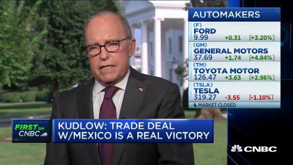 白宫首席经济顾问,在中美贸易谈判中持“鹰派”立场的库德洛27日在接受CNBC采访时吹嘘,(与墨西哥达成协议)将给中国“带来压力”。