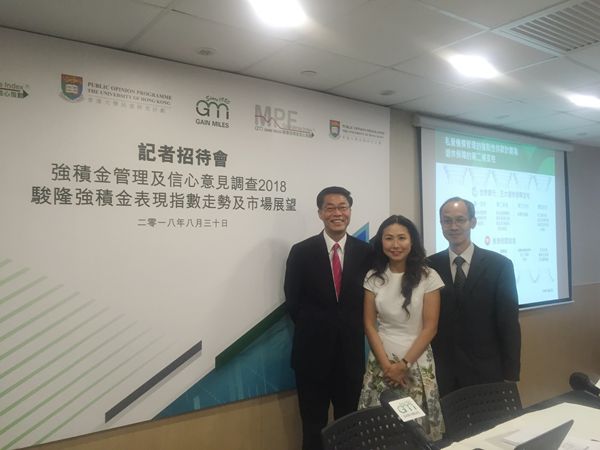 另外,駿隆委託港大民意研究計劃進行調查,訪問1005位介乎18至64歲,發現今年港人的MPF信心指數僅較去年微升0.1分至3.5分(滿分為10分),亦有16.2%的受訪者表示對強積金零信心。雖然受訪市民對MPF的信心有上趨勢,但整體仍維持偏低水平。