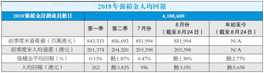 【香港商报网讯】受貿易戰、美聯儲強化加息周息及強美元因素影響,強積金表現見紅。根據駿隆強積金綜合表現指數,由年初至8月24日,強積金平均回報累跌2.77%,平均每人蝕5658元。另外,駿隆與港大民意研究計劃合作的強積金管理及信心意見調查,顯示整體強積金信心指數由去年的3.4分微升至3.5分,相比2014年的3.1分低位,指數逐漸回升。 香港商報實習記者 吳海綸