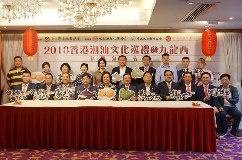【香港商報网訊】實習記者張芃芃報道:由香港潮屬社團總會指導,汕頭海外聯誼會、九龍社團聯會支持,九龍西潮人聯會、香港九龍潮州公會、九龍東潮人聯會合辦的「2018香港潮汕文化巡禮@九龍西」,昨日假尖沙咀潮州城酒樓舉行新聞發布會。潮汕文化節大使高永文親自制作潮州月餅、冲泡功夫茶,展示潮汕美食文化。香港九龍潮州公會主席馬介欽、九龍西潮人聯會會長潘陳愛菁、九龍東潮人聯會會長楊育城等出席,共同推介博大精深的潮汕文化。