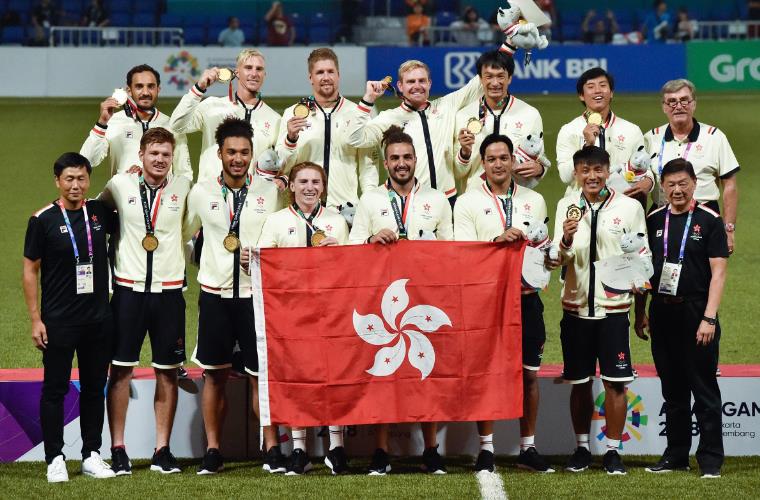 亞運男子七人欖球賽港隊獲金牌。