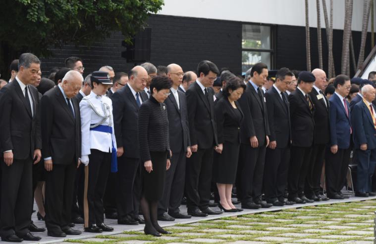 董建華,梁振英,林鄭月娥,中央政府駐港聯絡辦、外交部駐港特派員公署、解放軍駐港部隊代表,香港特區政府主要官員、司法界人士、行政會議成員、立法會議員、退伍軍人團體、其他社會人士等在紀念龕前鞠躬,向在抗日戰爭中犧牲的革命先烈致敬。