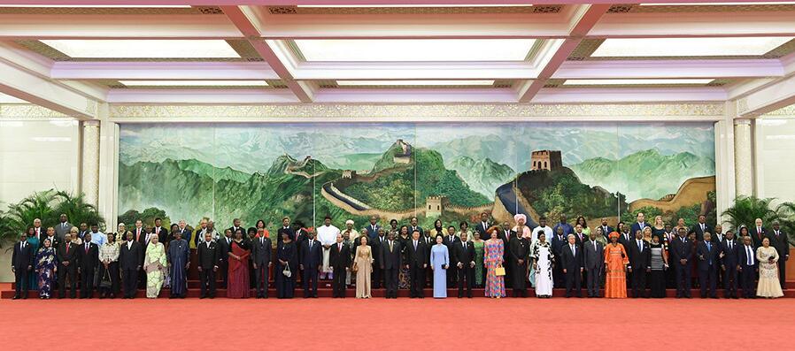 当晚的人民大会堂灯火通明,欢乐祥和。习近平和彭丽媛同贵宾们亲切握手,互致问候。56位活泼可爱的少年儿童手持中非合作论坛成员方国旗、会旗,热烈欢迎中外领导人夫妇,手拉手一一引领领导人夫妇集体合影。习近平和彭丽媛同各国领导人及夫人在巨幅苏绣壁画《长城》前合影留念。随后,壁画打开,中外领导人夫妇在汉白玉台阶前驻足,欣赏童声合唱《茉莉花》。在前往宴会厅沿途,盛装的青少年载歌载舞,欢迎远道而来的贵宾。