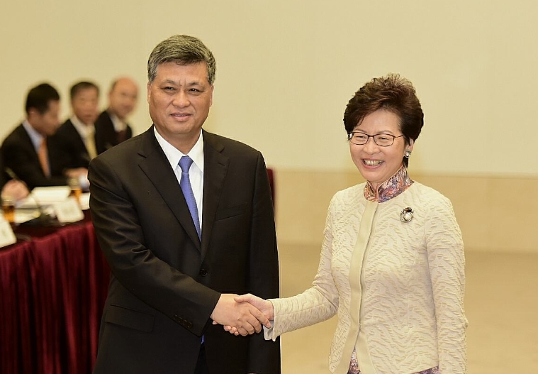 香港特區行政長官林鄭月娥(右)與廣東省省長馬興瑞將於22日主持西九高鐵站開通儀式。 資料圖片