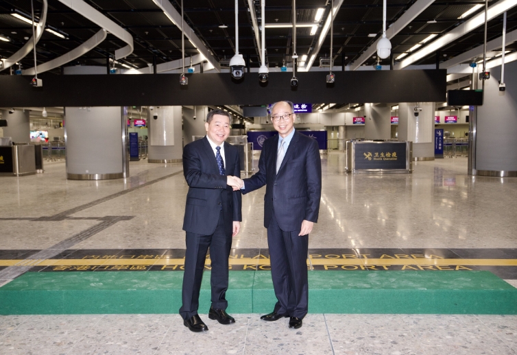運房局局長陳帆(右)與廣東省人民政府副秘書長林積(左),於西九龍站內地口岸區啟用儀式上合照。