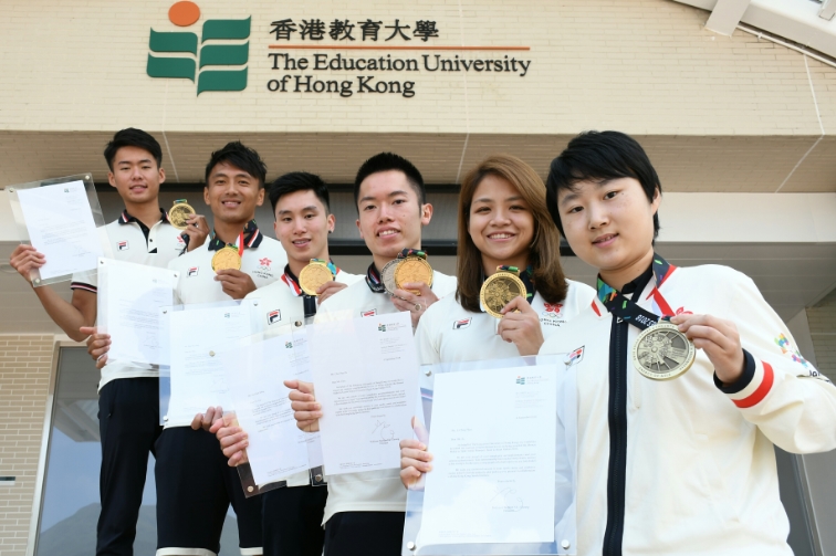 今屆亞運港隊派出龐大的代表團參與亞運,其中46人正就讀或曾就讀教大,其中壁球的歐鎮銘、體操的石偉雄及單車的李慧詩包辦了港隊8面金牌中的5面,聯同其他教大運動員取得的4銀4銅佳績,合共為香港取得13面獎牌。教大向6名獎牌運動員頒發嘉許狀,包括:金牌得主歐鎮銘、郭柏雅、石偉雄;銅牌得主周義評、蔡韻瑜及李清韻。