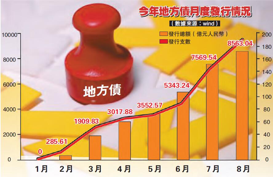 【香港商報网訊】自上月財政部發文催促地方政府加快發債後,近期各地方政府新增債券提速。上周五一天,浙江、山東、湖北就發行了超過1200億元巨額的地方政府債券。綜觀8月,地方政府新增專項債發行規模約4267億元,為7月發行量的3.2倍。為此,銀保監會於近日下發通知警示,新預算法實施後,地方政府債券發行兌付方式由財政部代為還本付息變為省級政府自發自還。