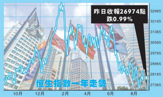 恒指在這一輪反彈未能突破28000點,昨天更跌穿上月低位26871點,收市亦未能重上27000點水平。