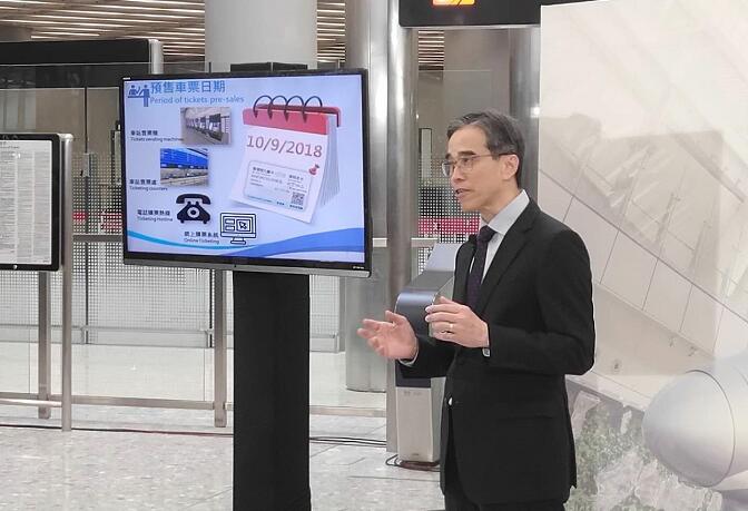 港鐵車務總監劉天成透露,香港高鐵站將于9月10日早8點開始預售車票。(记者刘深 摄)