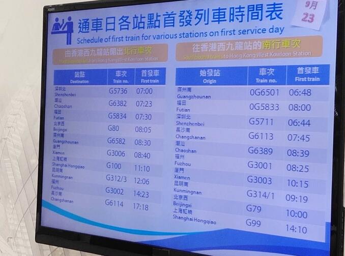 預售當日只開放售票櫃位,站內其他地方不予開放。首日由西九龍站始發的頭班列車起碼有10班,例如早上7時往深圳北、8時30分往廣州南、下午5時18分往長沙等等。