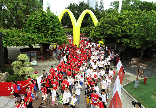 【香港商报网讯】钟智维报道:由麦当劳中国主办、中国宋庆龄基金会公益支持的第五届“为爱麦跑” 深圳站今天在深圳锦绣中华?民俗村百艺广场发令起跑。3000多名小朋友及其家长穿上亲子装、红白袜,小手拉大手完成爱心跑,共同助力“麦当劳叔叔之家”。