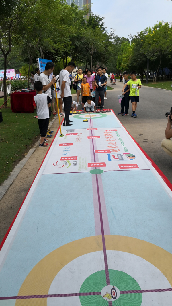 记者在活动现场看到,此次普法活动的互联网答题闯关环节,主办方在金山湖公园内设置了7个答题入口 ,对应了城管的7个职能分类出题,市民在每一个关口扫二维码回答3道题目。现场还植入了“城管职能跳一跳”、“地壶球”(冬季奥运项目冰壶球的普及版)、“亲子拍一拍”、“快乐弹射乒乓球”、“亲子花篮接球”等系列亲子游戏,通过活动向市民普及城管的法律法规。孩子们在家长的带领下,玩得非常投入。