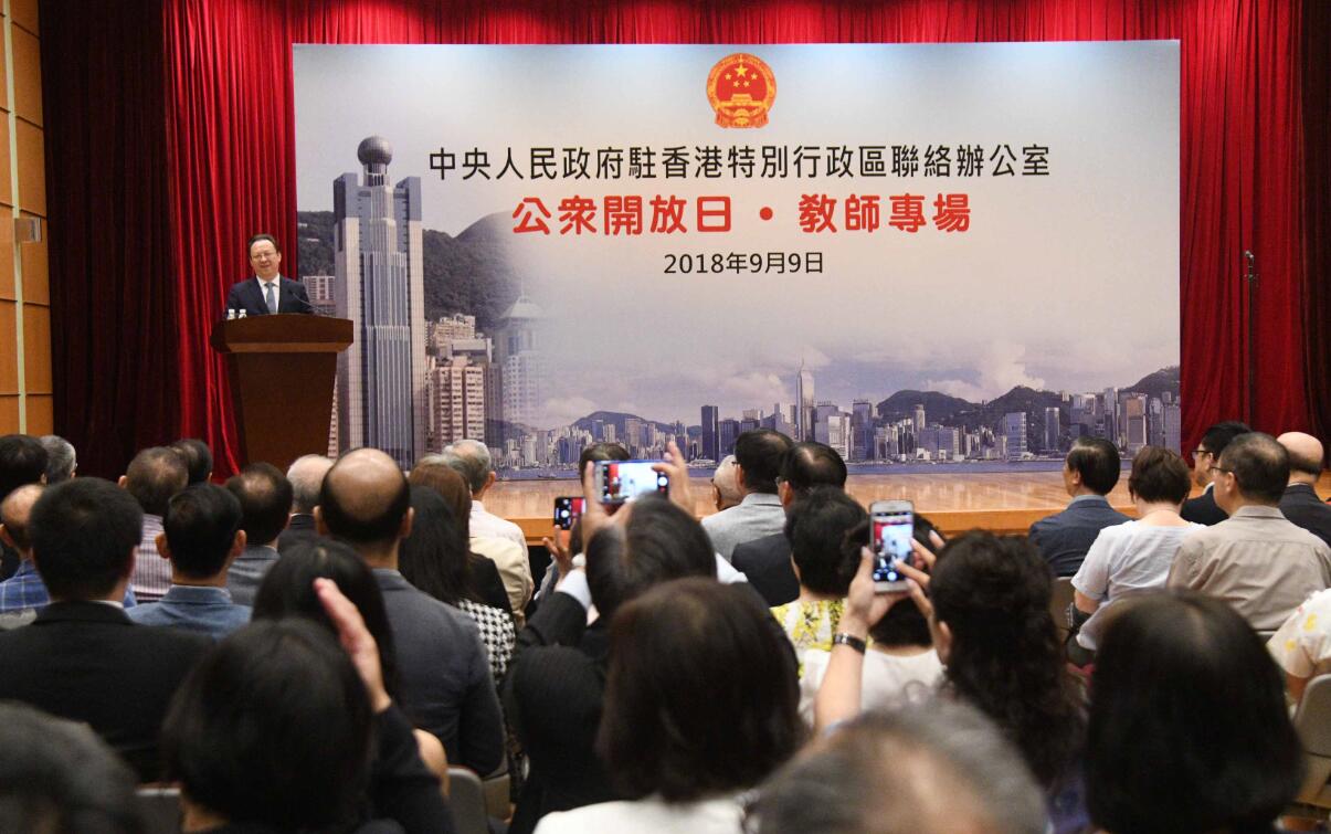 中聯辦繼今年4月首次開放日後,昨舉辦第2次開放日,並定為「教師專場」,全日共分3場,600名老師應邀出席。中聯辦副主任譚鐵牛在上午的開幕儀式上,代表主任王志民致辭。他首先對香港教育界朋友的到來表示歡迎,並預祝老師們教師節節日快樂。