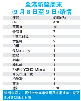 【香港商報网訊】記者馮金鋒報道:上周末一手樓盤成交表現以將軍澳日出康城LP6及新地南昌站匯璽II為最標青,前者推首輪487伙單位,兩日已出售478伙,現時發展商更加推488伙。