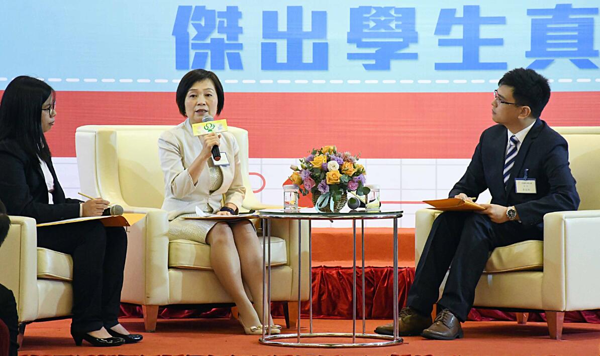 教育局副局長蔡若蓮(中)與同學們真情對話。記者 馮瀚文攝