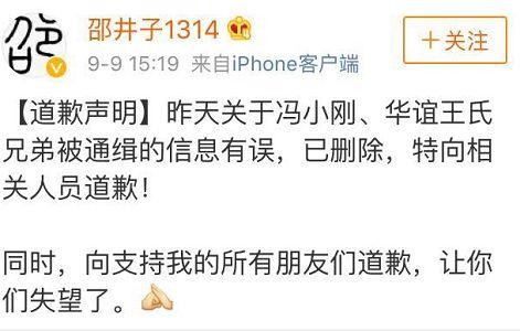 “冯小刚因涉嫌犯罪,已被公安部下发通缉令!同时华谊兄弟王氏兄弟俩,也已被通缉!”实名认证微博用户“邵井子1314”9月8日在微博上称,冯小刚、王氏兄弟是以刑事犯罪被通缉的,其所犯罪行为远非偷税漏税那么简单。“《手机2》年底上映的笑话,已成过眼烟云。”